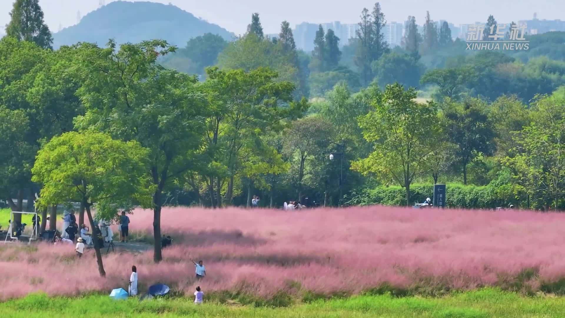 良渚古城遺址公園秋色“上新” 粉色花海引客來